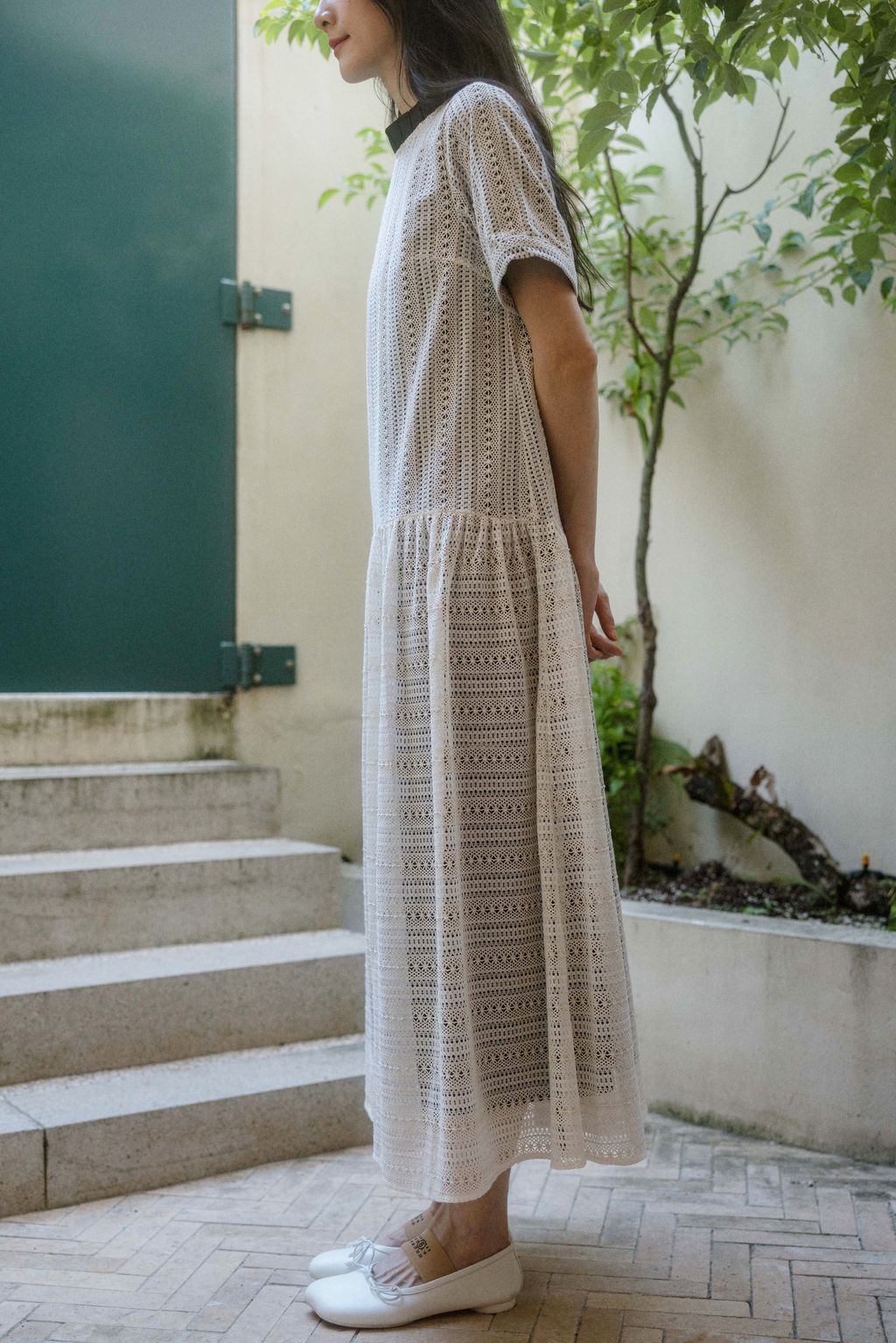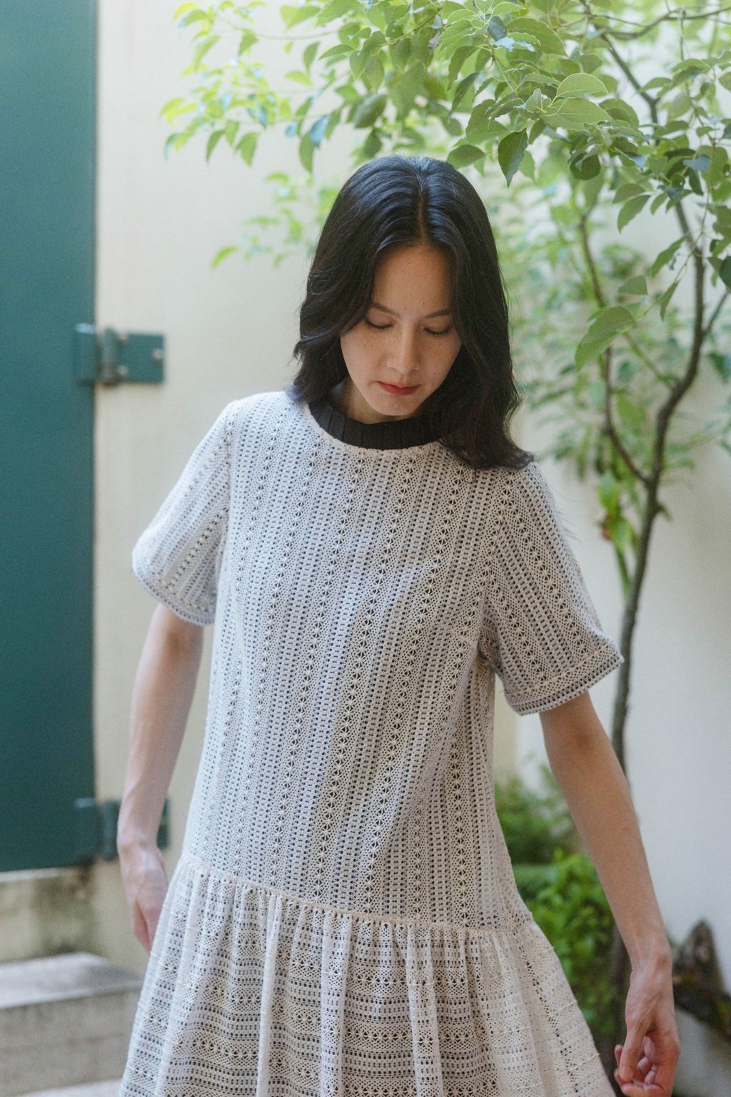 此系列二為細緻的迷離光點洋裝,搭配 𝐓𝐇𝐄 𝐀𝐑𝐈𝐋. 推出的白色花卉蕾絲多變包。