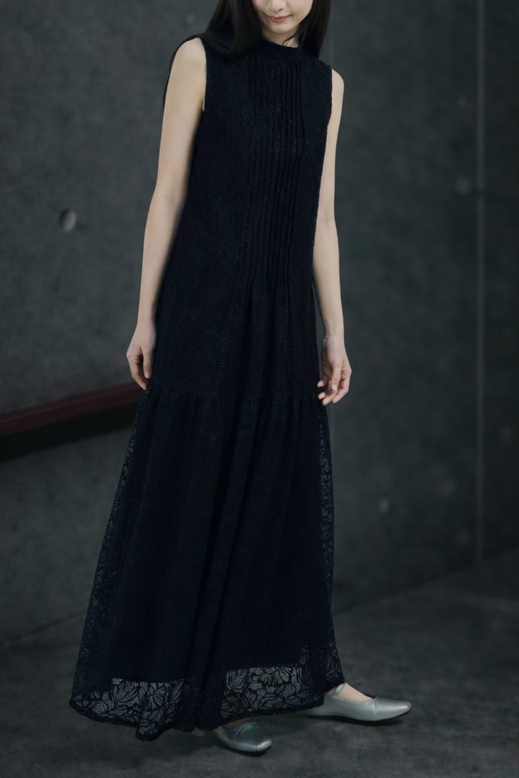 The dress features a fully lined interior, using breathable Japanese lining fabric that balances lightness with comfort and thoughtful craftsmanship. A long tie belt is included, allowing it to be styled freely at the waist or around the neck, creating versatile silhouettes and adding an effortless sense of movement to everyday wear.