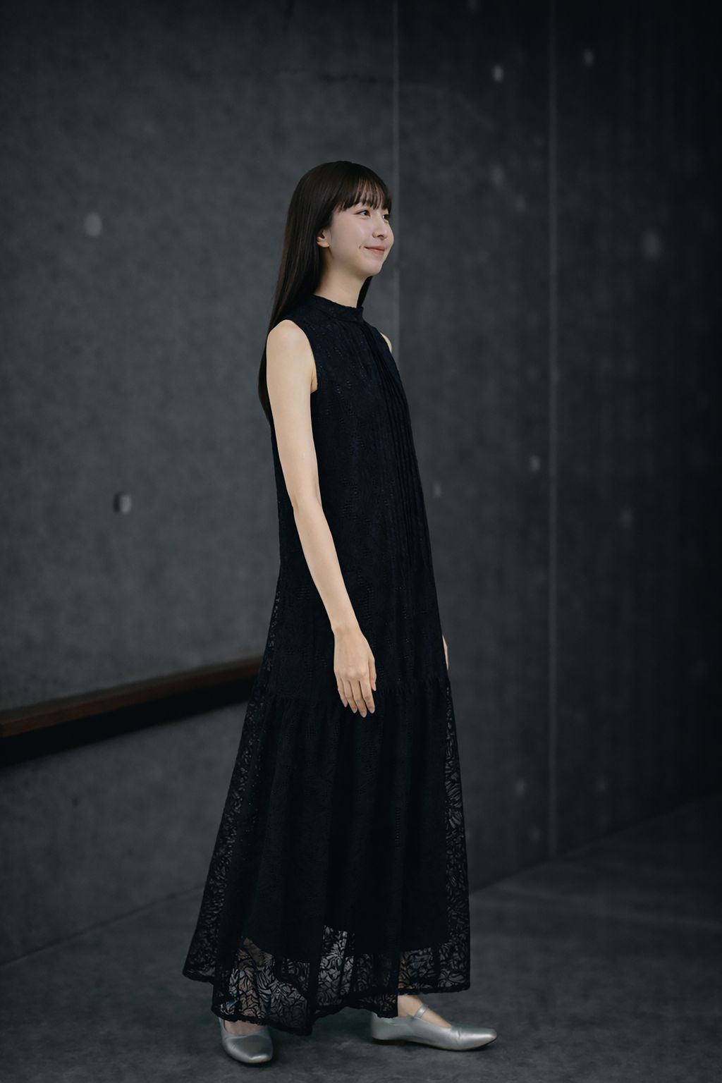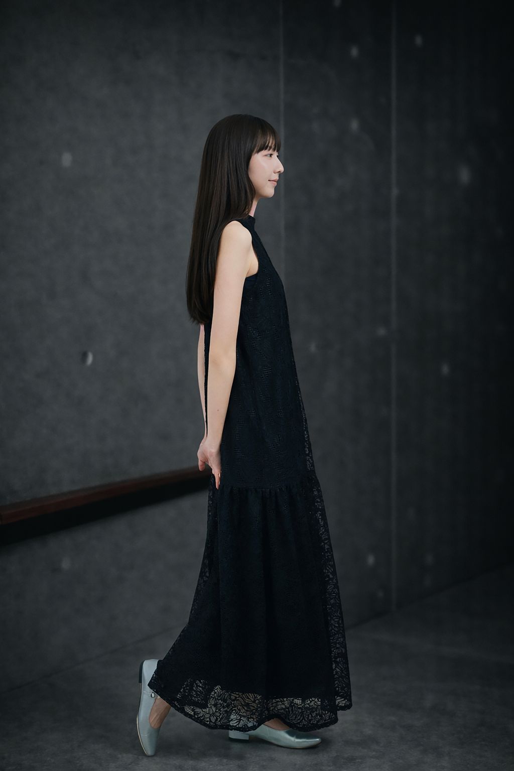 Inspired by the faint glow of early morning light, the “𝑆𝑈𝐵𝑇𝐿𝐸 𝐷𝐴𝑊𝑁 𝐷𝑅𝐸𝑆𝑆” is crafted from exquisite Japanese-made lace with delicate, subtly dimensional floral textures—like soft silhouettes of blossoms spreading across a sunlit window, gentle yet richly expressive.