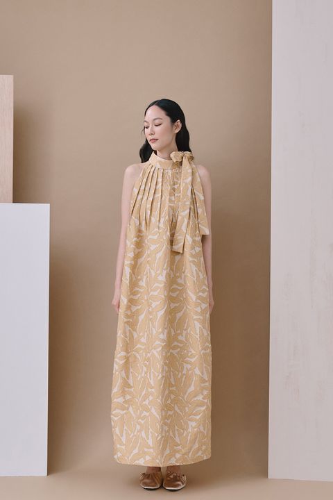 SPRING FEAST VEINED LEAF DRESS IN RICE