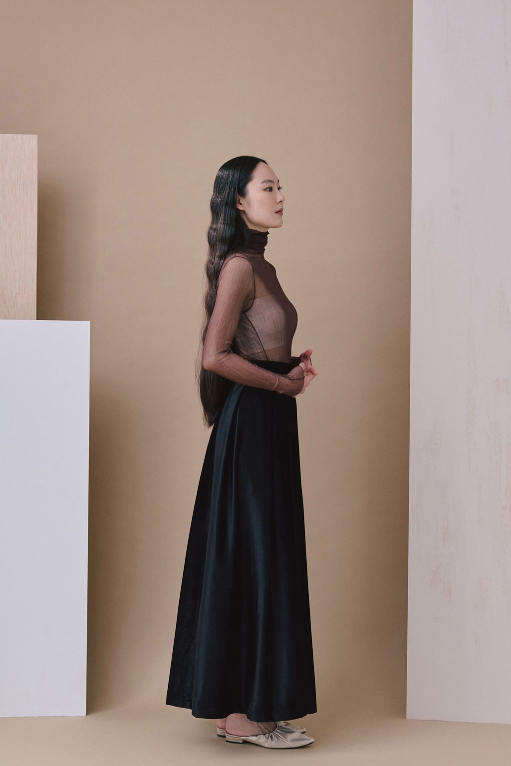 吟遊千里打褶長裙是一款充滿詩意與優雅的長裙,採用日本製作的精美絲絨面料,呈現低調光澤感的舒適高級氛圍。極長的裙長設計,隨著步伐輕輕擺動,展現出如吟遊詩人般的浪漫氣息。面料的細膩質感與立體打褶相得益彰,營造出豐富的層次感與流暢的線條之美。
