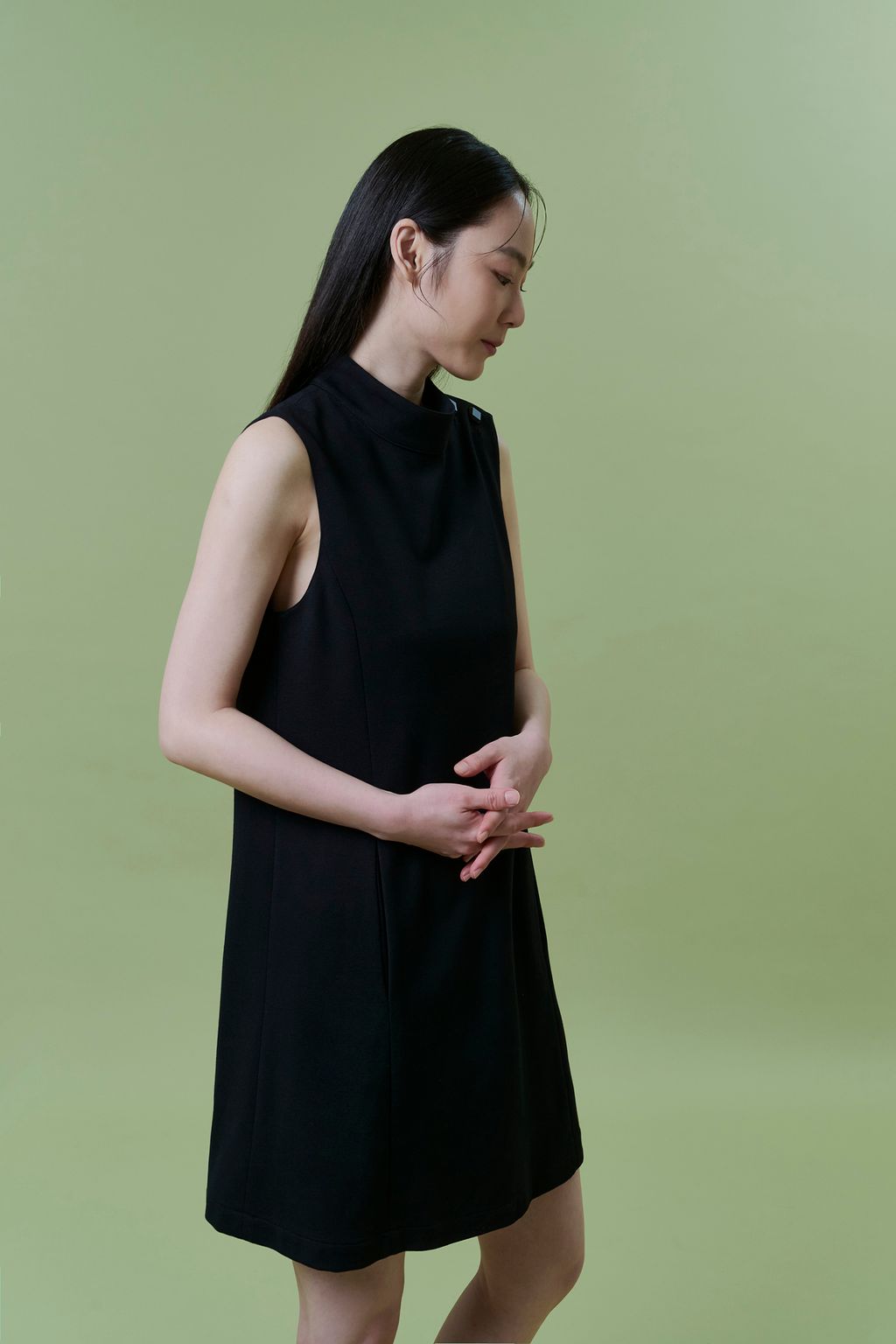 經過多方研究後,終於誕生出此款簡潔的短版洋裝,如法式女伶一般的優雅,散發沈靜又唯美的質感。