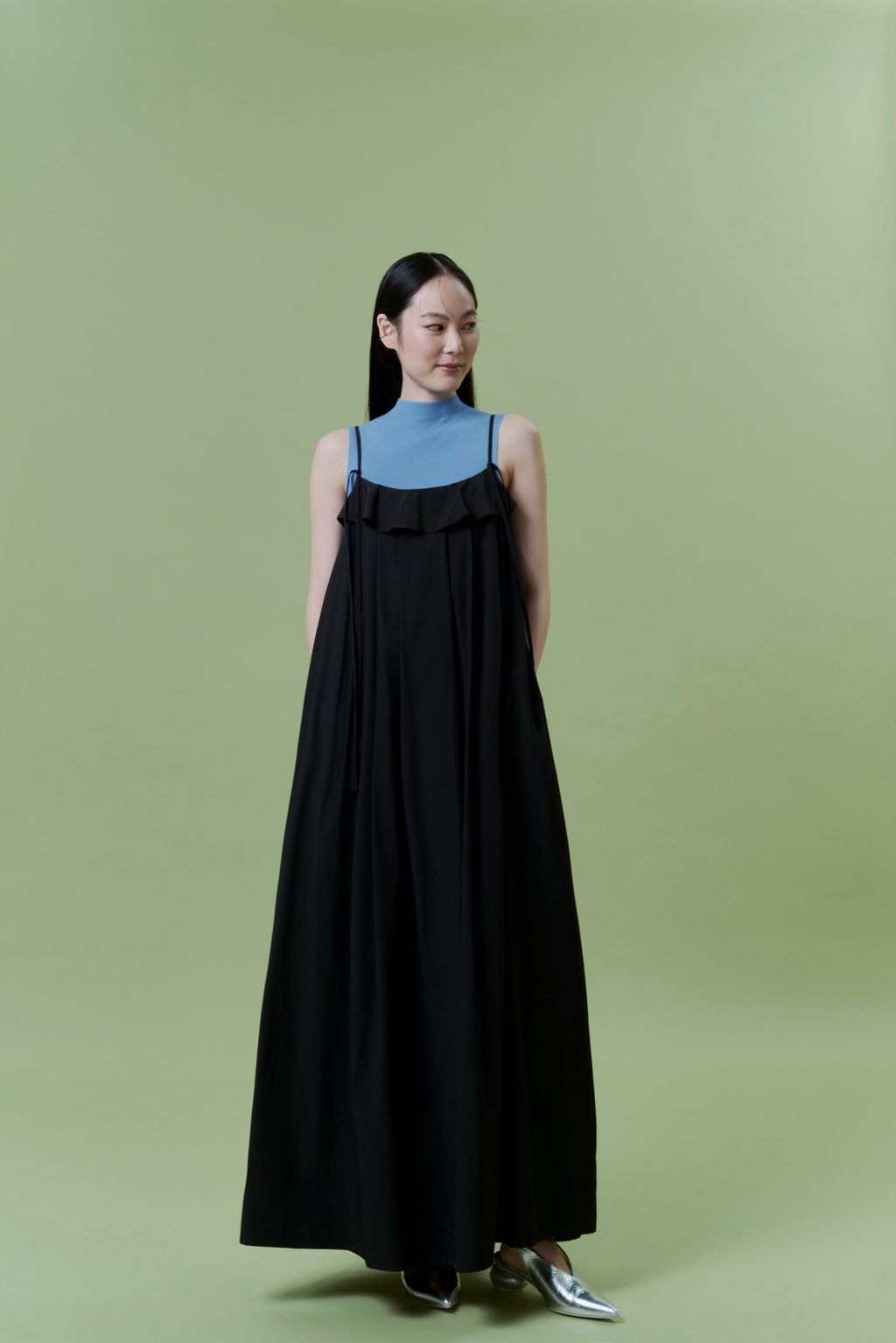無垠蒼穹吊帶連衣裙 | 石英黑